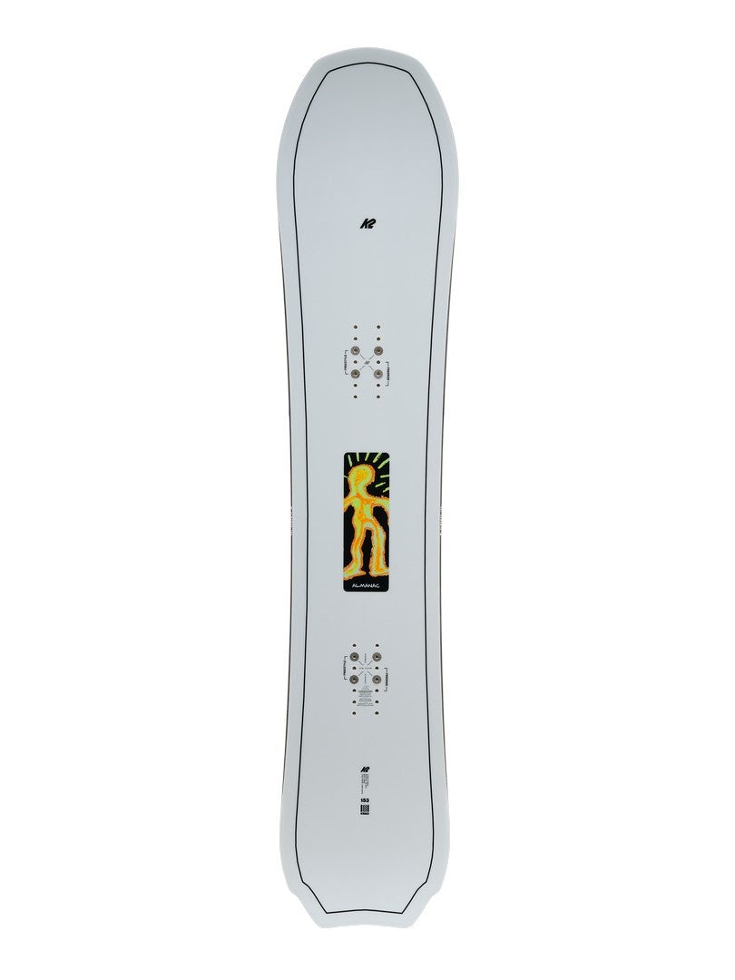 The K2 Almanac is designed to tackle the entire resort thanks to inspiration from other K2 models like the Party Platter and Excavator, it’s purpose-built to be your daily driver and a high performance snowboard. Camber underfoot and raised tip/tail contact points offer energy-packed turns and smooth transitions while a sintered base, a snappy bamboo-aspen-poplar core, bi-axial fiberglass, and a carbon backbone give you all the response, pop, and speed you could ever need.